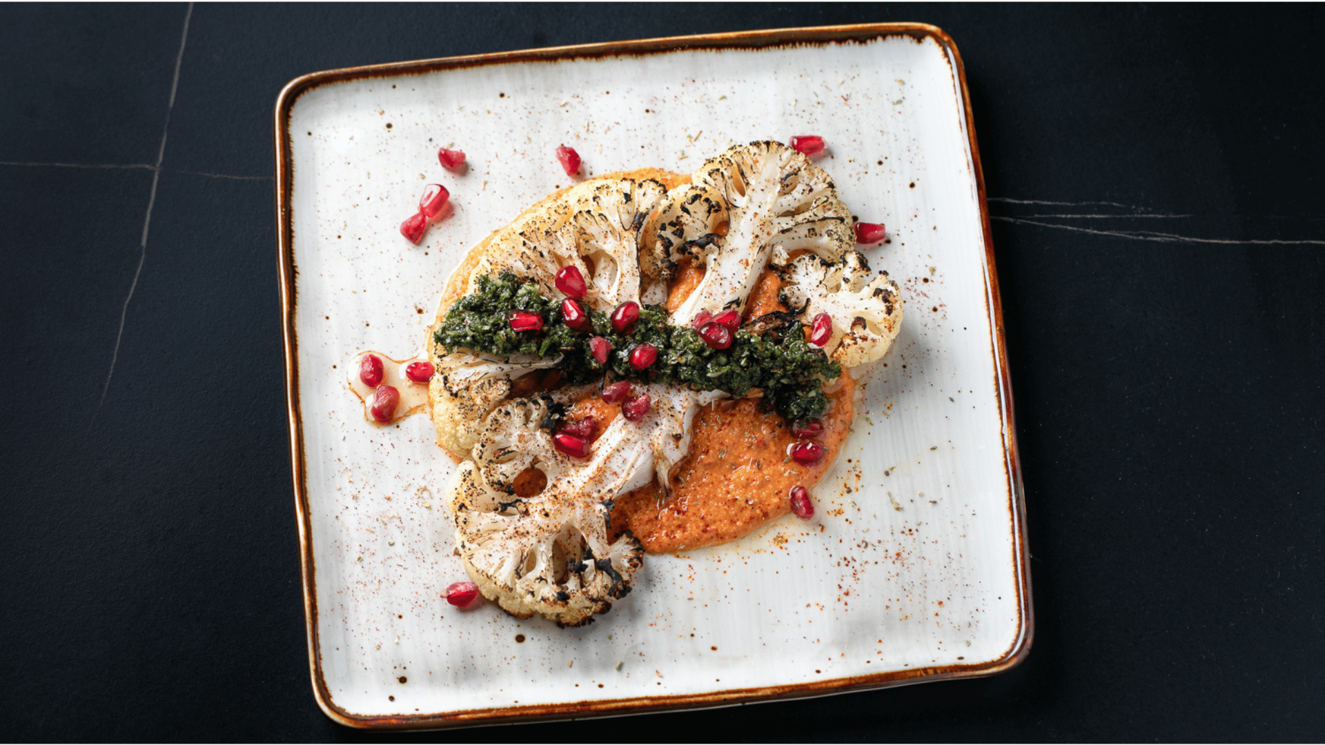 char-grilled cauliflower, classic romesco, sumac, chimichurri